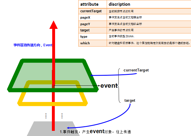 联想:气泡就相当于事件,水就如同整个Dom树,事件从Dom树的底部层层向上传递,直到达到Dom的根节点
