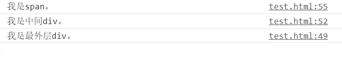 | <script> window.onload = function() { document.getElementById("box1").addEventListener("click",function(event){ console.log("我是最外层div。"); }); document.getElementById("box2").addEventListener("click",function(event){ console.log("我是中间div。"); }); document.getElementById("span").addEventListener("click",function(event){ console.log("我是span。"); }); } </script>